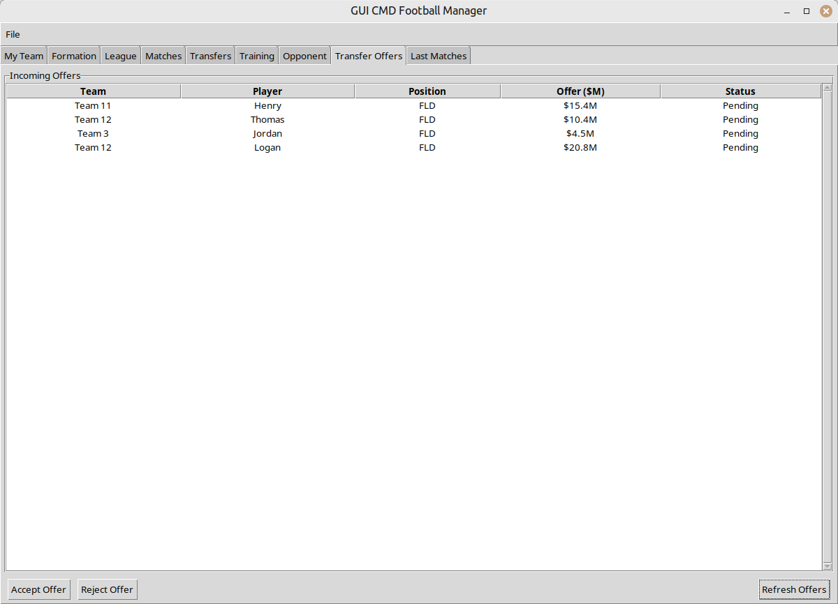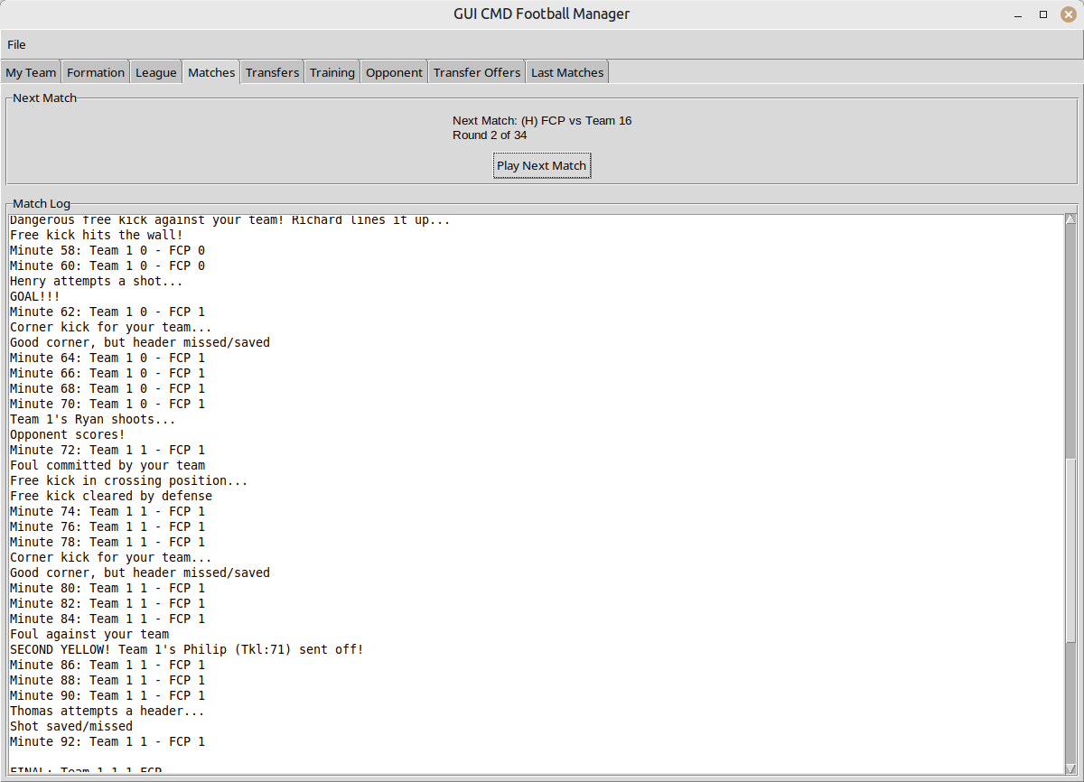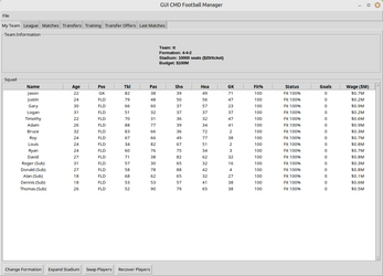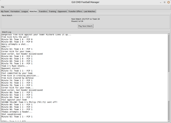 This is a football manager game for the terminal and now also with GUI (Graphical User Interface).